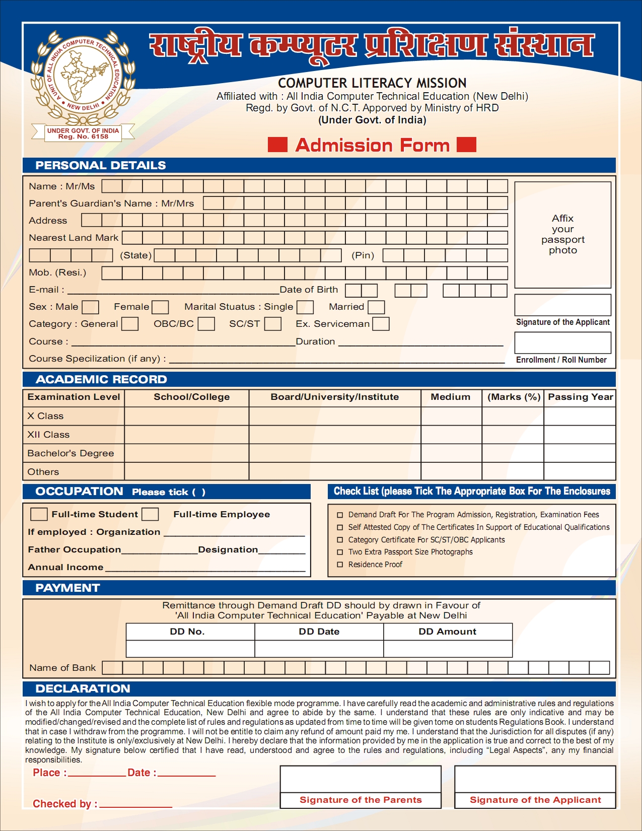 Admission Application Form